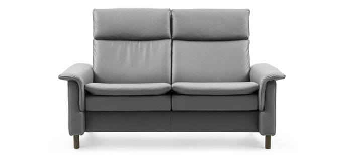 Modern and inviting. The tight but extremely soft cushioning of the Stressless Aurora gives the sofa a distinct and modern look. Despite the clean lines it also has detailing which gives it an exclusive appeal. The sofa comes in a high and low back version, of course with individually adjustable seats to suit your personal desires. Choose between steel or wooden legs in three different heights.