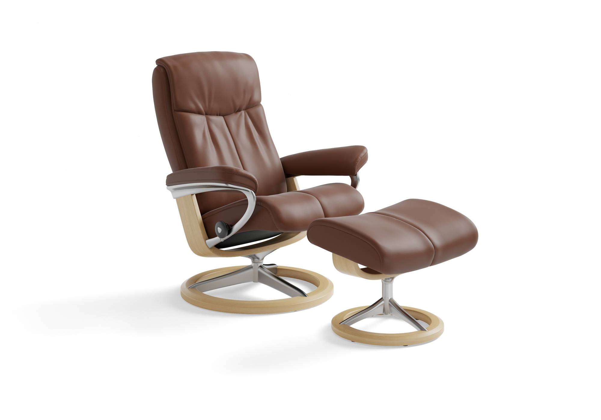 This Stressless Peace recliner is made by Ekornes in Norway. Stressless has built the world’s finest recliners since 1971. Design, function and comfort are at the heart of the Stressless concept. The chairs we build feature unique functions found nowhere else like our Plus™ System, which gives you perfect lumbar and neck support, and the Glide System that follows your body’s movements to adjust your recliner to the perfect position. Our adjustable ottomans complete the experience of comfort you’ll find in no other recliner. Our products are built to the highest standards and feature a 10-year warranty on the internal mechanism. No one builds a recliner like Stressless.